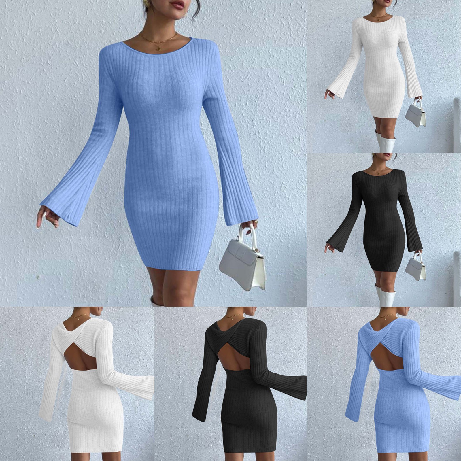 elegant knitted bodycon dress women casual solid: knitted dresses for women
