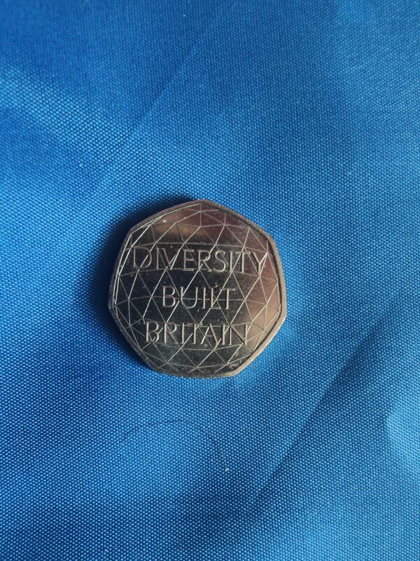 Very Rare, Unique And Authentic Circulated Minted British 50p Coin Of 50 Pence Diversity Built Britain